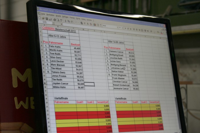 Das Highlight des Jahres fand am 10. November 2012 in unserer Werkstatt statt. Es wurden tolle und spannende Duelle gezeigt. Wie im letzten Jahr wurde in zwei Altersgruppen gefahren. In der jüngeren Altersgruppe von 6 bis 13 Jahren gewann der 13-jährige Erik Pasedag gegen Tim Hitzel. Dritter wurde Florian Spieler. In der ``großen´´ Altersgruppe gewann Joachim Schultheis gegen Achim Genz. Das ``kleine´´ Finale gewann der letztjährige Zweite Wolfgang Eiselt.