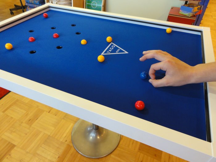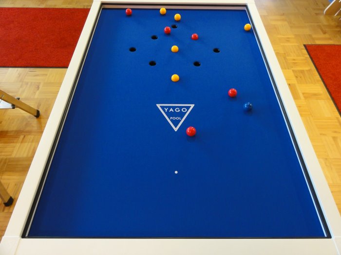 Yago Pool - Das strategische Fingerbillard (ab 6 Jahren) Ein Spiel für die ganze Familie und ein Magnet für unsere Männer, egal ob groß oder klein. Es ist eine Mischung aus Billard und Tic-Tac-Toe. Ziel ist, drei Kugeln in einer Reihe zu versenken. Es gibt 3 Spielvarianten mit aufsteigendem Schwierigkeitsgrad.