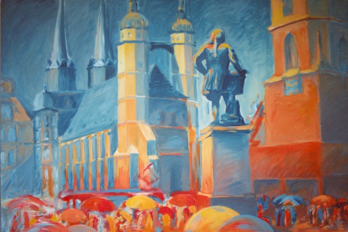 Ein Geschenk der Künstlerin Bettina Nowak-Gorr zum 30- jährigen Bestehen der Stadt Rödermark. Es zeigt die Bürgermeister seit 1977. Der erste Bürgermeister Karl Martin Rebel war schon seit 1969 Bürgermeister von Ober-Roden.